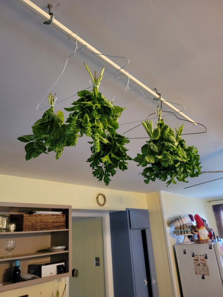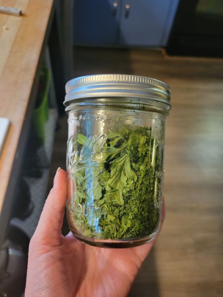 I used my dehydrator this year after not using it for a while. I preferred to hang my herbs but when I tried this year the parsley just bleached out and looked awful so I used the dehydrator instead and was very pleased with the result.