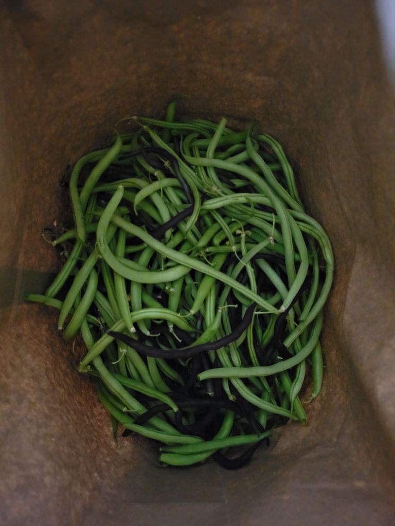 I was really tired after last weekend so the only things I did on Monday were work, tend to sick kitty, pick beans and go to my Trustee meeting at church, plus I got a little more stitching done on Lavendar Girl. A bonus was that my awesome husband had the entire kitchen cleaned up while I was at my Trustee meeting. He is the best!