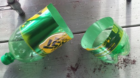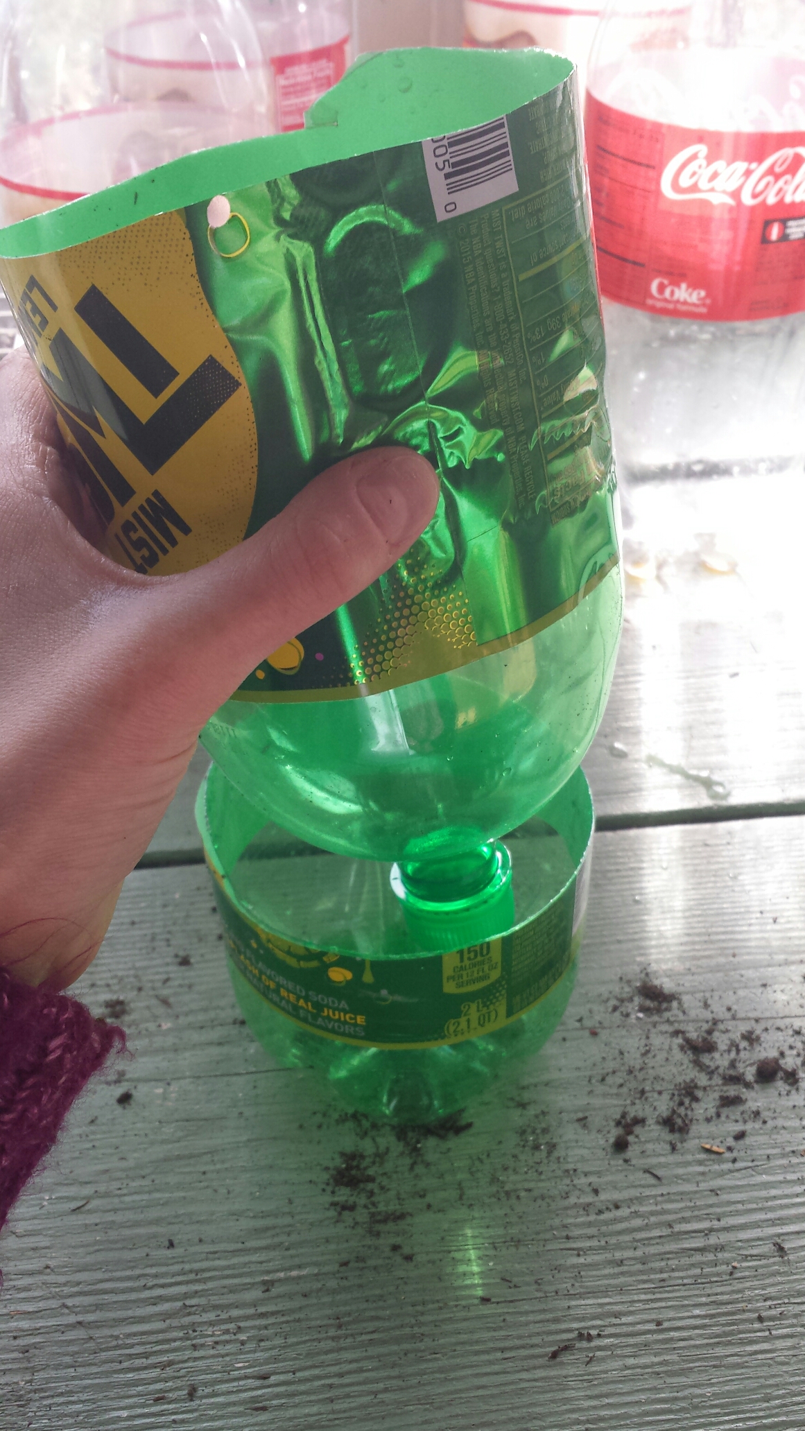 When you have the first bottle in 2 pieces invert the top half, which has the cap, upside down into the bottom half of the bottle. Now you are ready to plant some seeds in it!
