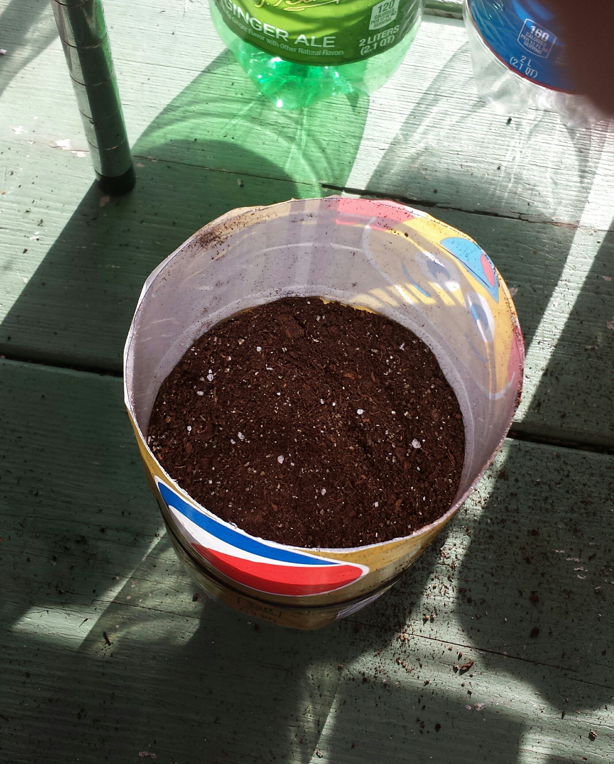 Last year was the first year I tried starting my seeds in a pop bottle. Sound kinda weird? Not really if you think about it. A pop bottle is just like a mini greenhouse. It keeps the warm sunlight in and the cold temperatures out. Even in my cool basement the seeds are warm and snug in their individual little bottle greenhouses. The results I got were fantastic! I grew things like never before. Cilantro, basil, celery, and watermelon just to name a few.