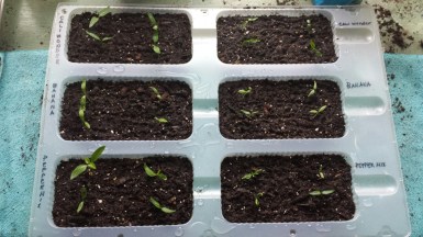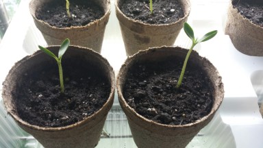 Today I did get 28 pepper plants and 4 watermelon plants transplanted into their own, larger spaces. They are doing well and hopefully Mr. Gray will not get into any more mischief with these guys. Now if we could just get some sun here in Western NY that would really, really help. -MM