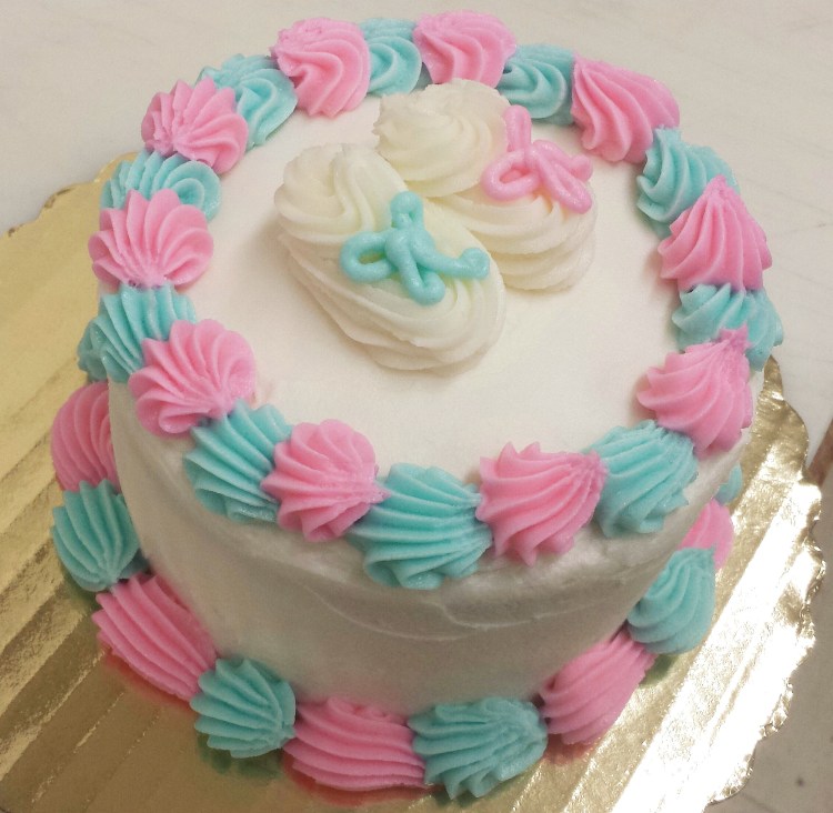 To kick off our busy season in the bakery department, I had a wedding cake and a gender reveal cake to bake this weekend. Both pretty little cakes. I predict a busy summer in our future! -MM