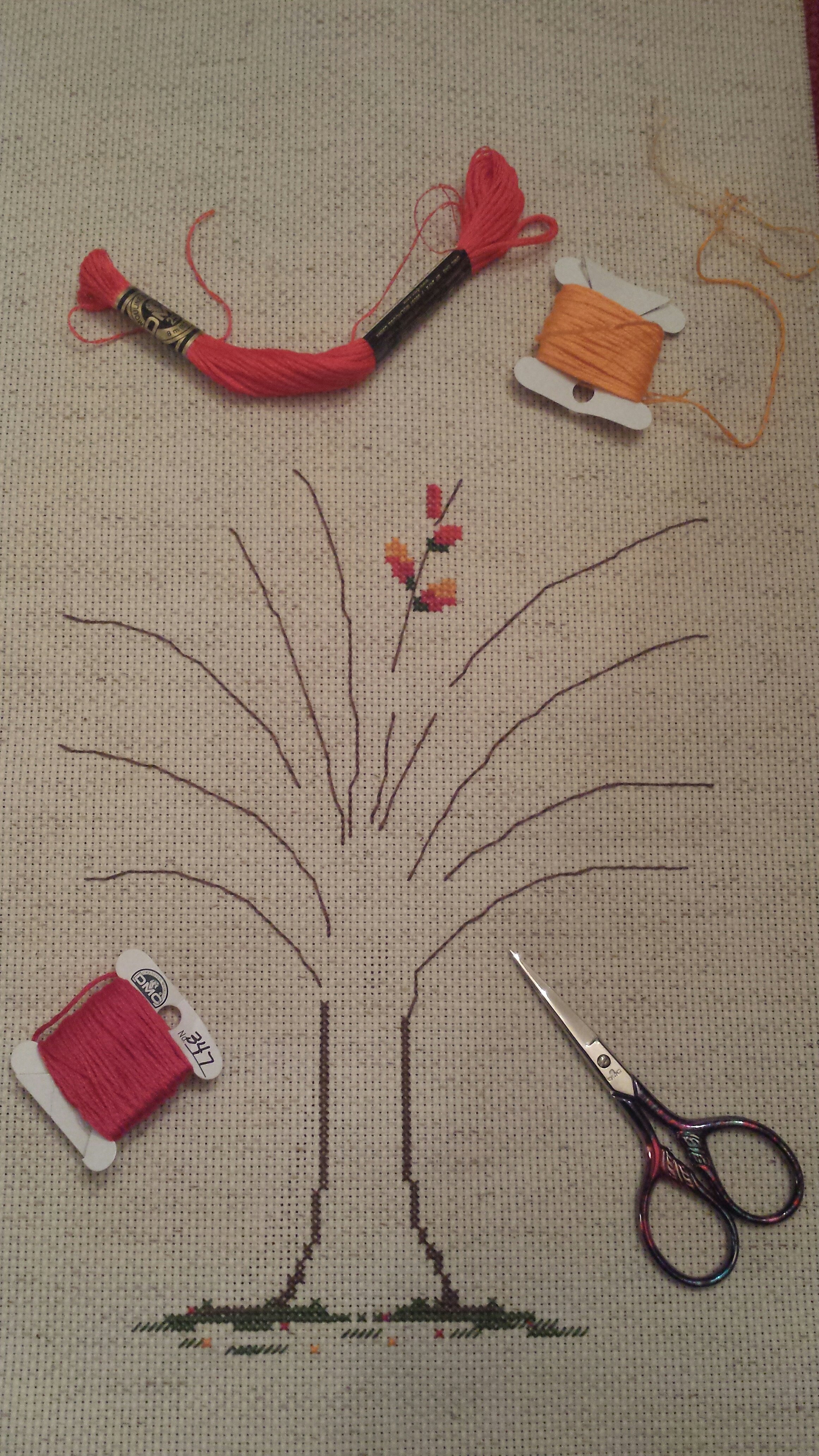 I tend to agree with previous comments, that you’ve started the tree so maybe it’s a good idea to continue with that. If you choose to stitch the 10 page marathon, we’ll be here to cheer you along!