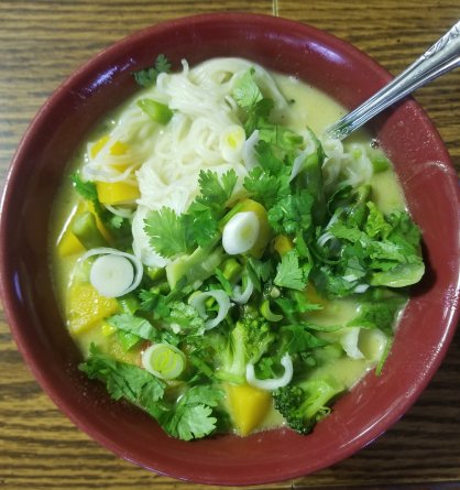 I have always understood noodle bowls to be more of a broth based dish. There was only a cup of broth in this recipe and TWO 15 oz. cans of coconut milk. My mom said that sounded like way too much coconut milk.