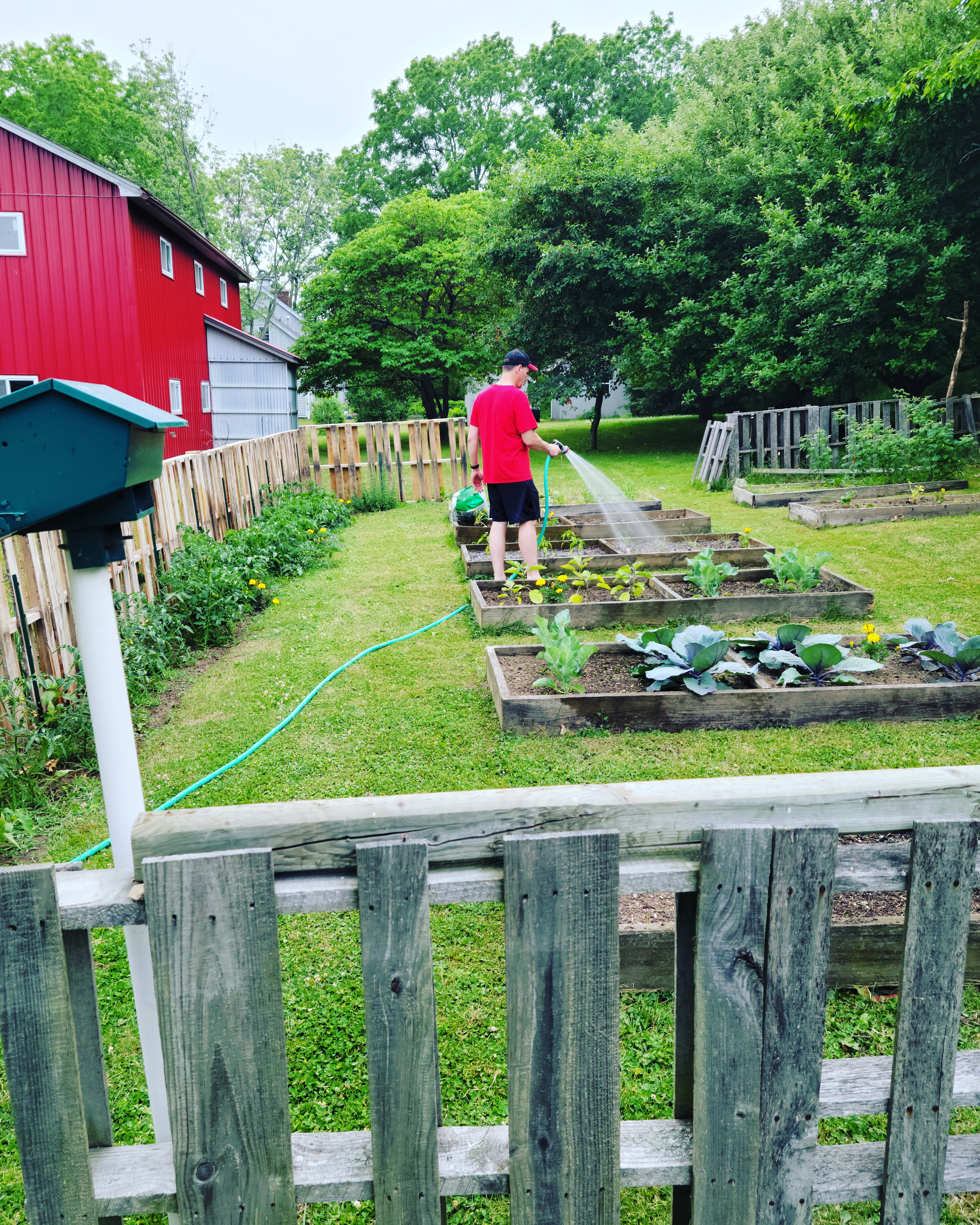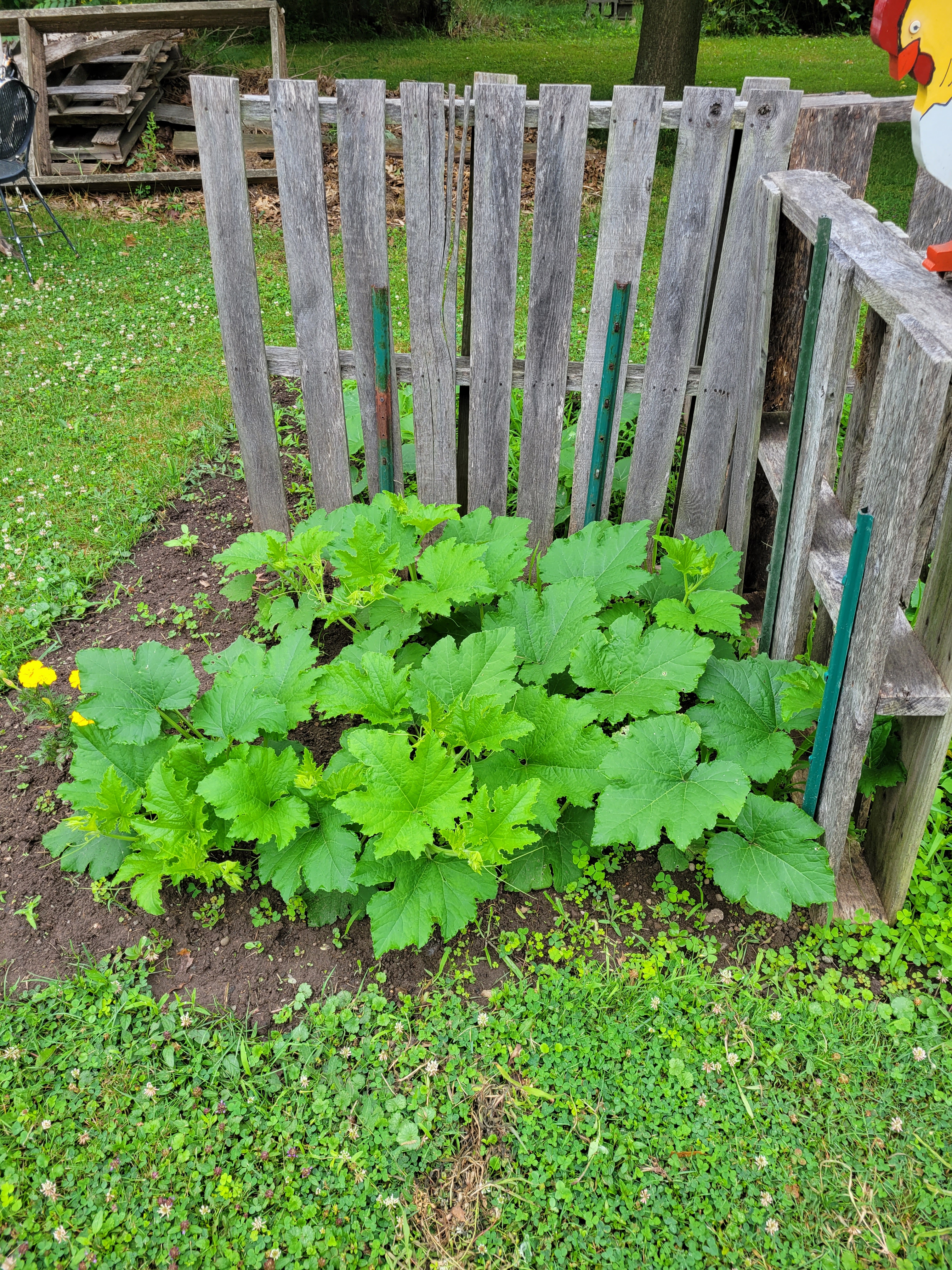 I also dug up 2 of the raised bed frames and made one large bed that I sectioned into 4 with pallets. I planted buttercup squash, carving pumpkin, pie pumpkins and cucumbers in this area. I really like it! What do you think?