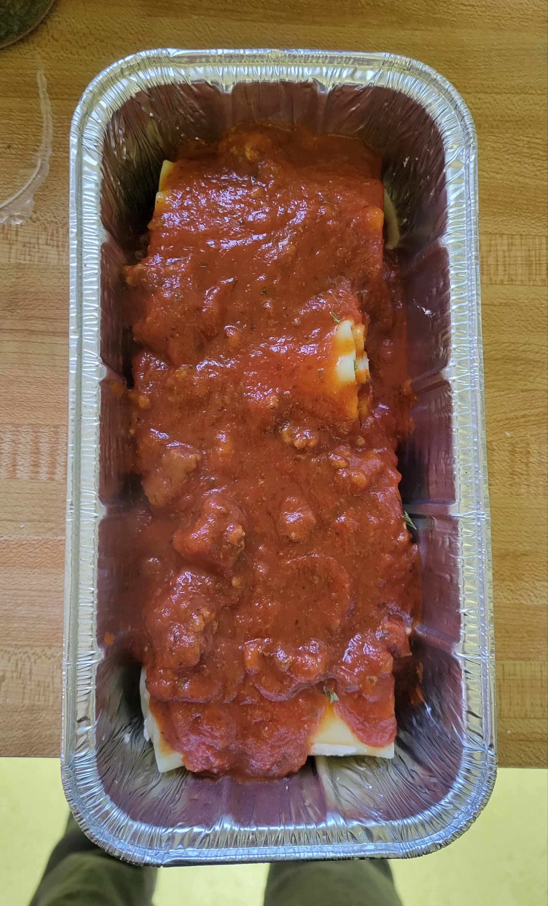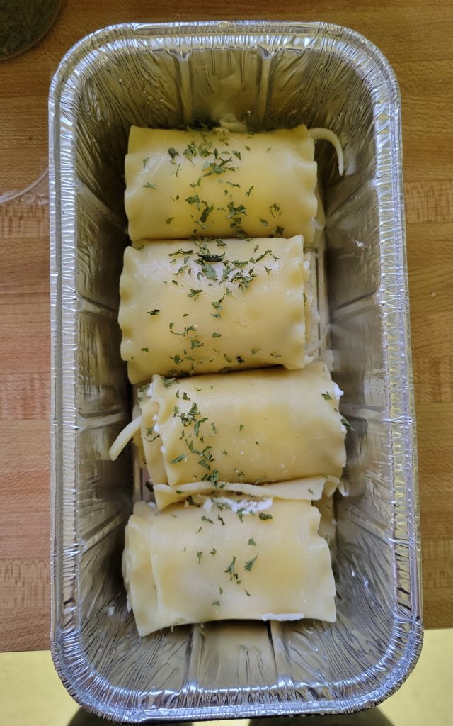 - Lasagna Rolls with meat sauce and Italian bread