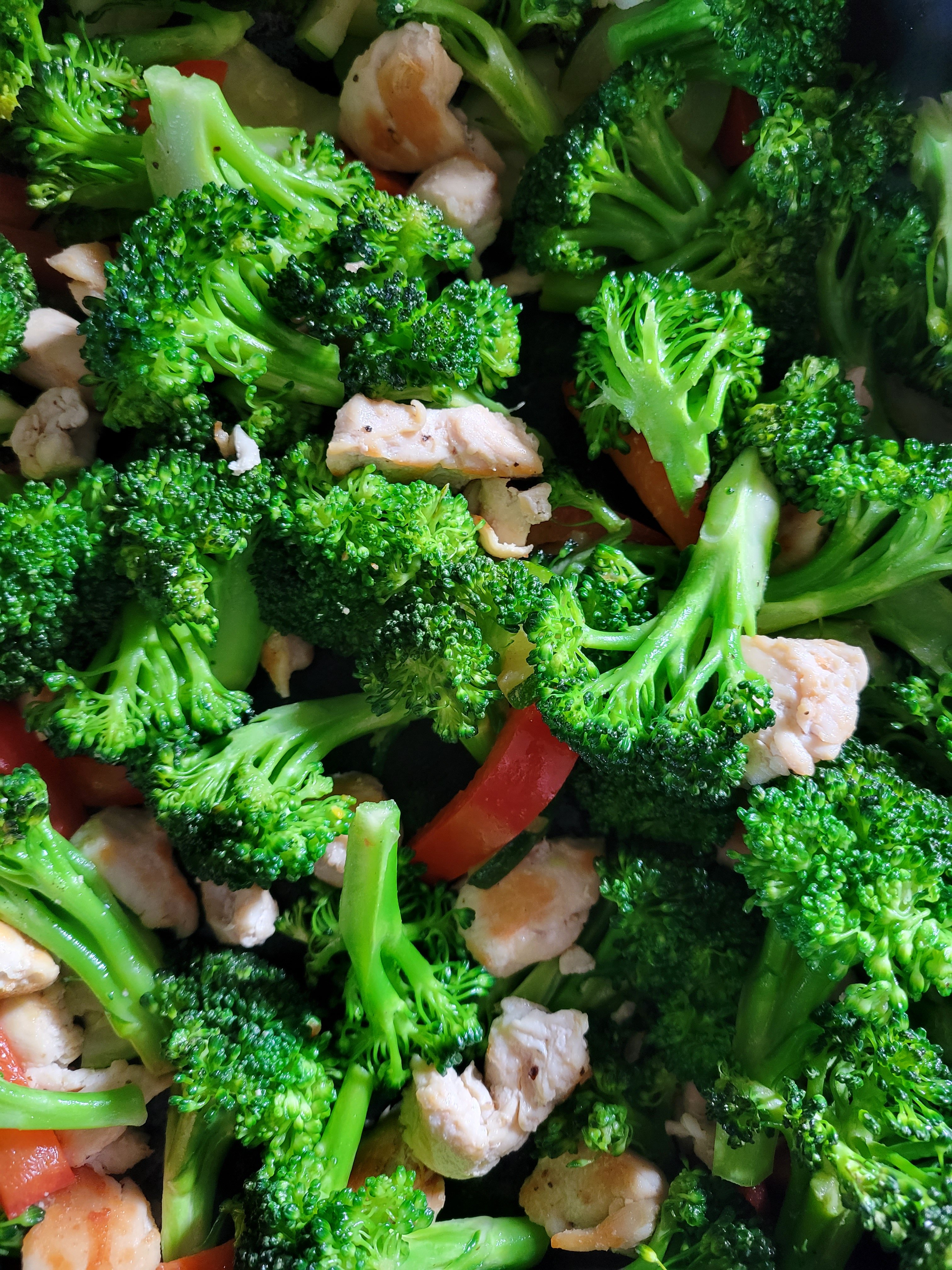 Stuffed peppers with pasta Fresh peas with spaghetti, basil and parmesan Chicken and veggie stir-fry