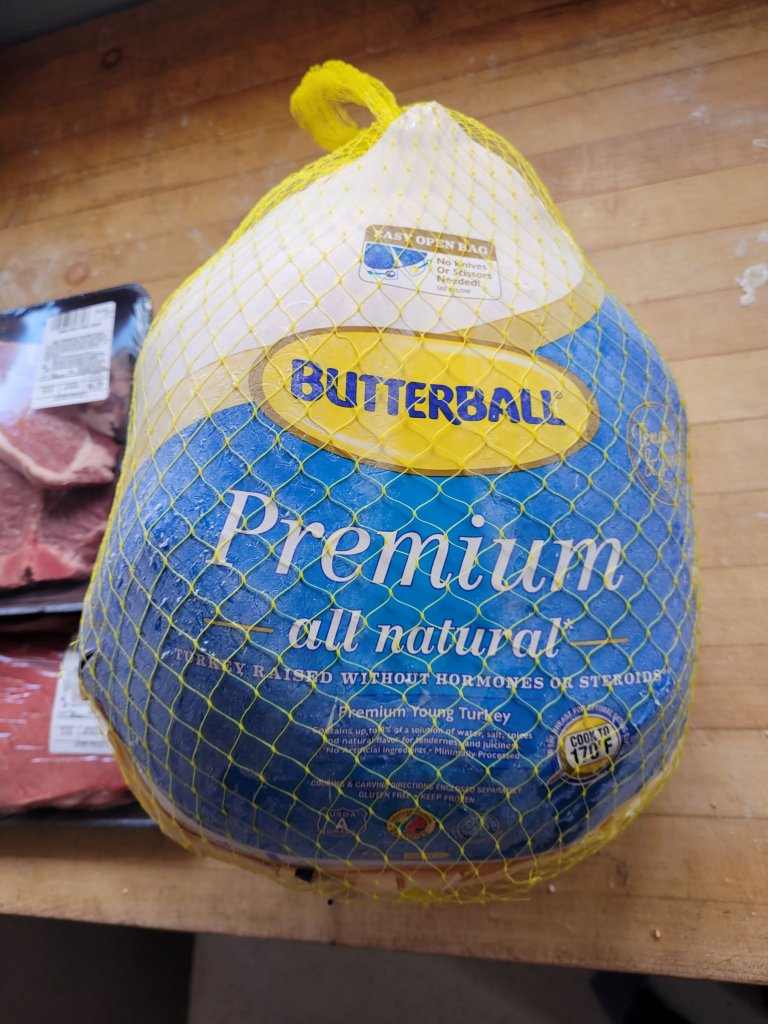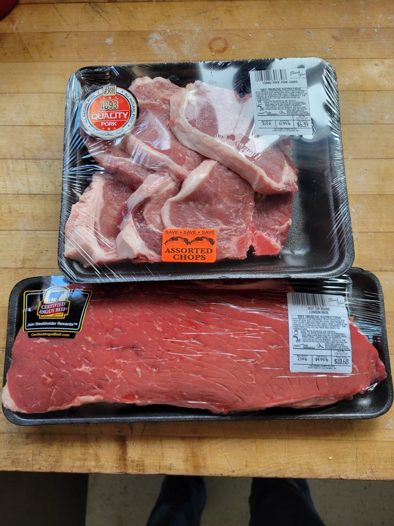 Week 9 groceries were pretty significant for us. I always say buy only what’s on your list when you shop, but last week I made an unexpected purchase. A 23 lb Butterball turkey jumped right into my cart! Yes it was the last frozen turkey from the Thanksgiving season and it was only 99 cents/lb. You bet I grabbed it. Other significant purchases last week were a London broil for $10.68, 6pk pork chops for $6.39 (great price and I froze 3) and of course creamer for $8.99 (I need to work on getting a better price). I also had 2 doz eggs delivered from our farmer friend who came at the right time to push my sons car out which was stuck in the driveway. What service!