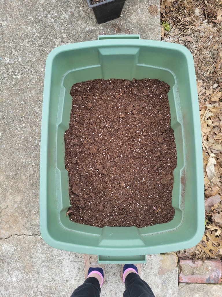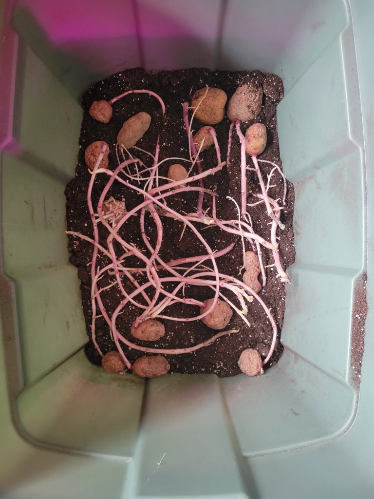 I planted a bin of potatoes yesterday and stuck it outside. I had some potatoes stored from last year that sprouted so I am experimenting to see if I can get them to grow. What do I have to lose right? I’ll keep you updated.