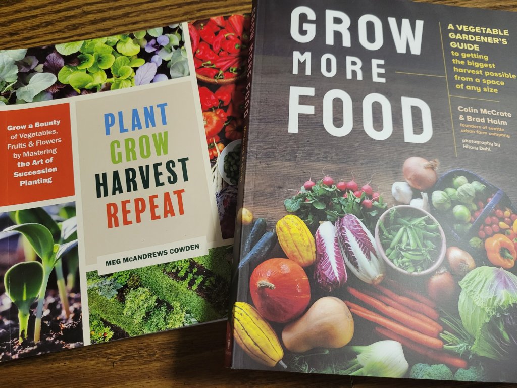 The two books I bought were “Grow More Food” by Colin McCrate and Brad Halm and “Plant Grow Harvest Repeat: Grow a Bounty of Vegetables, Fruits, and Flowers by Mastering the Art of Succession Planting”, by Meg McAndrews Cowden, who I follow on Instagram.