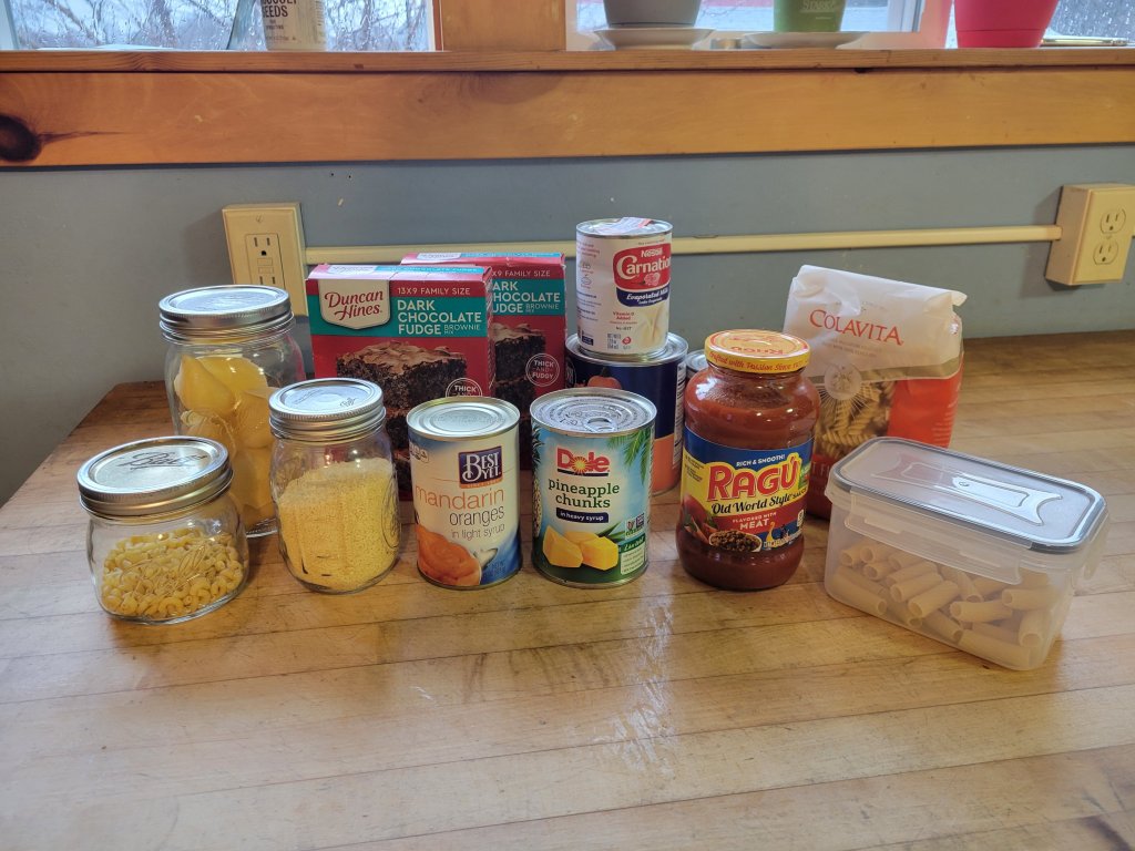 If you are like me, you probably have small quantities of different kinds of pasta sitting in your pantry. I plan to use the macaroni, rigatoni, shells and a bag of fusilli pasta that my son got free at a food show. I definitely don’t usually have brownie mixes on hand but my husband has been cleaning out his mom’s pantry and she wasn’t using these so he brought them home. I’ll whip some kind of fancy brownie recipe up with them. I don’t like Ragu sauce, I am more of a Prego kind of gal if I have to buy a jarred sauce but again my son bought it so can’t let it go to waste. I also want to use the pineapple, oranges, pumpkin mix and evaporated milk too. Should be an interesting week!