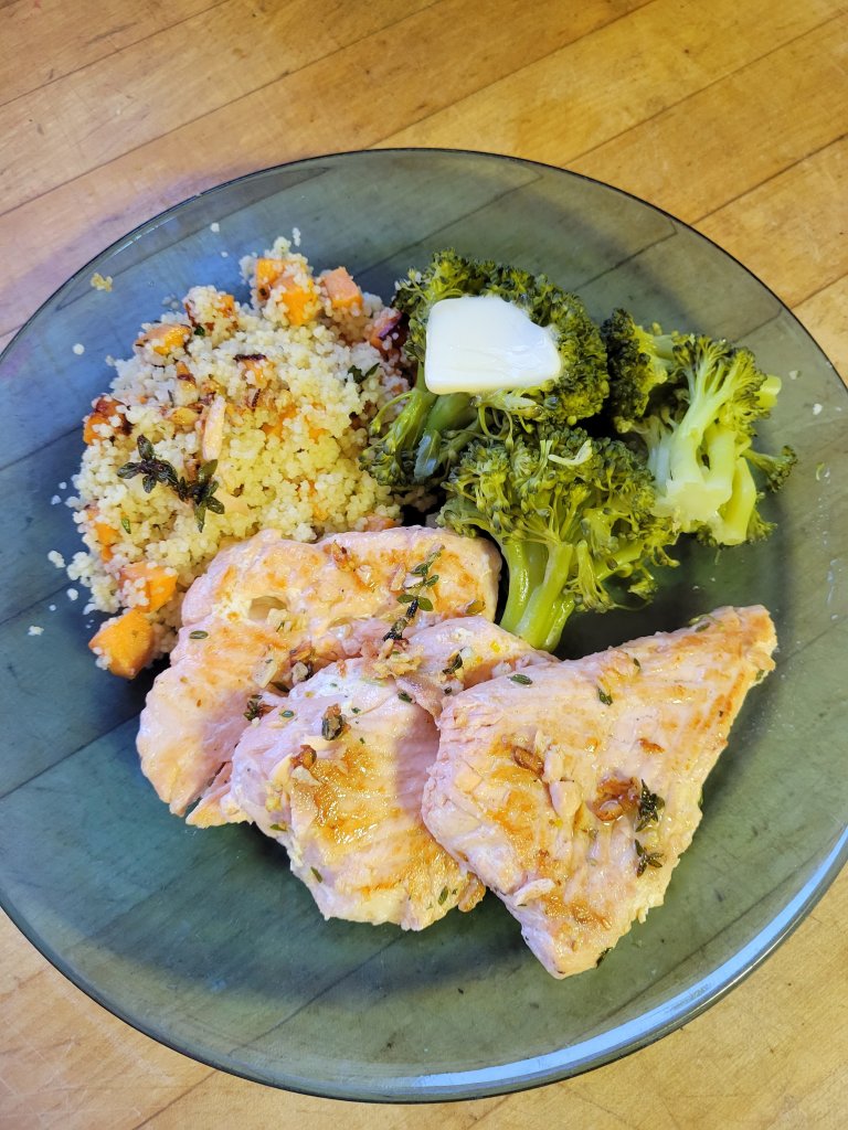 I spent $102.96 this week on groceries. I can’t believe I got out of a Wegmans only spending $36 and I even bought salmon! I splurged on salmon and olives and dolmas. If you have never had a dolma it’s a rice mixture wrapped in grape leaf and pickled.