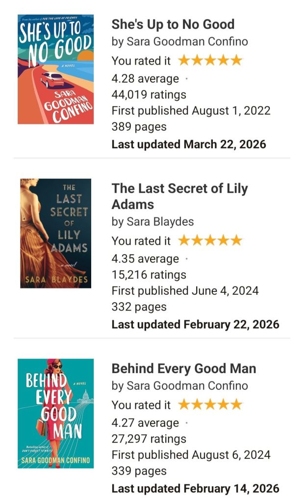 In February and March I read 6 more books! Below are the six I read. I have been diving into author Sara Goodman Confino’s titles and I really enjoy them. Eight books down 44 to go.