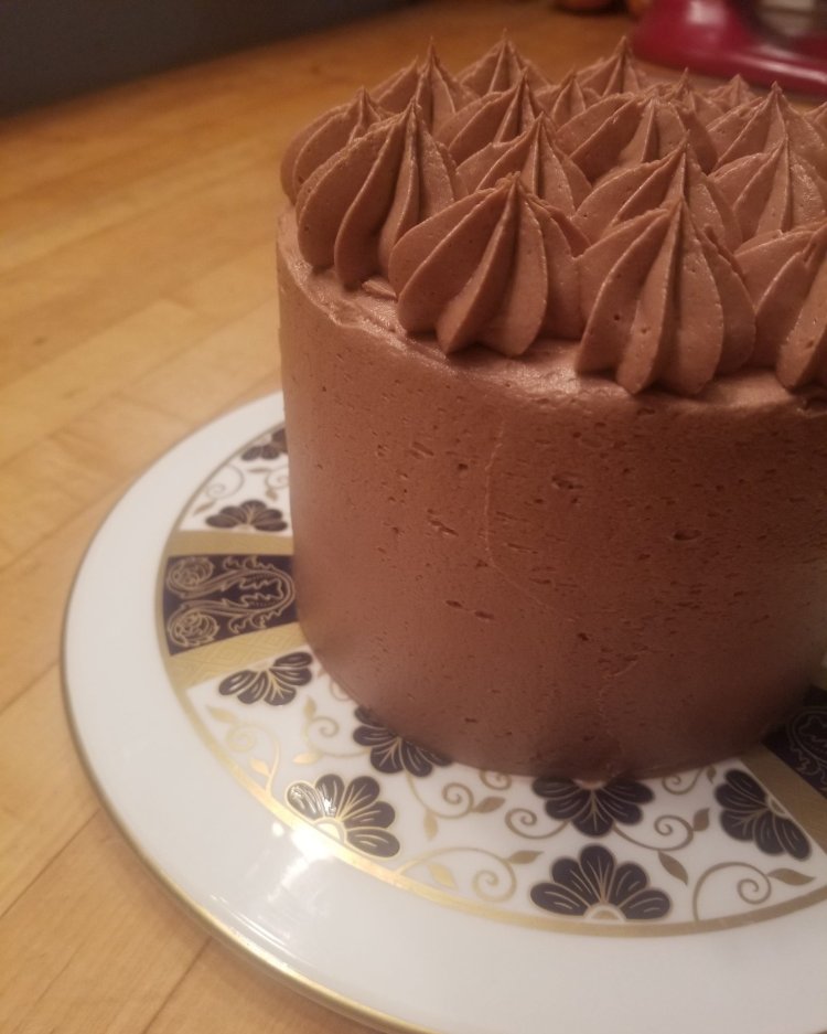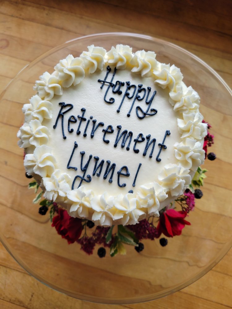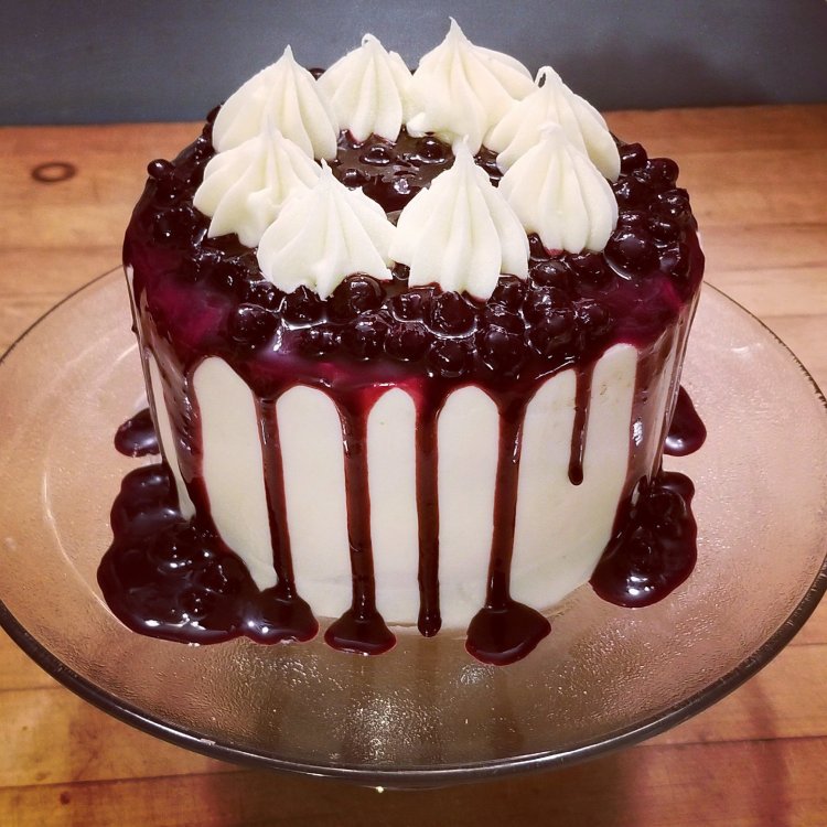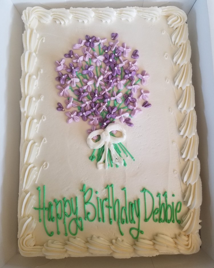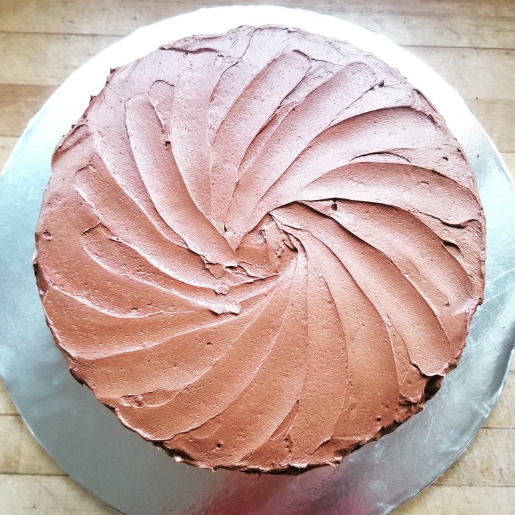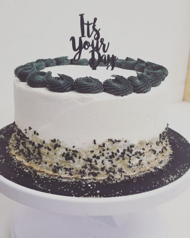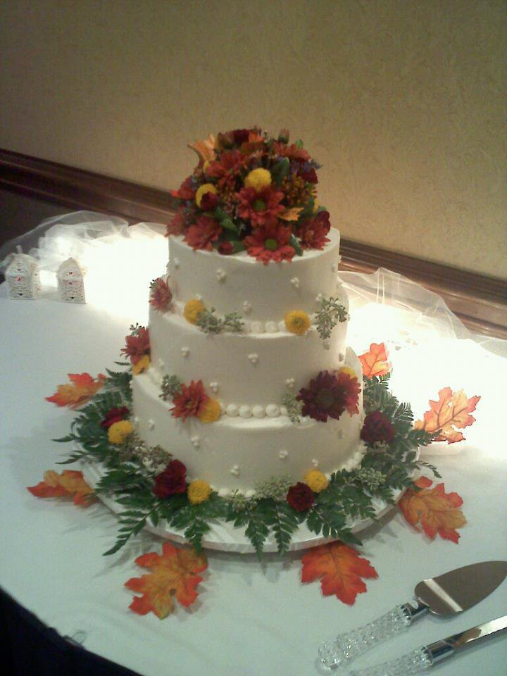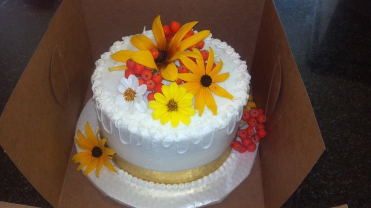 Anniversary cake with fresh flowers freehand scroll lace work of buttercream frosting