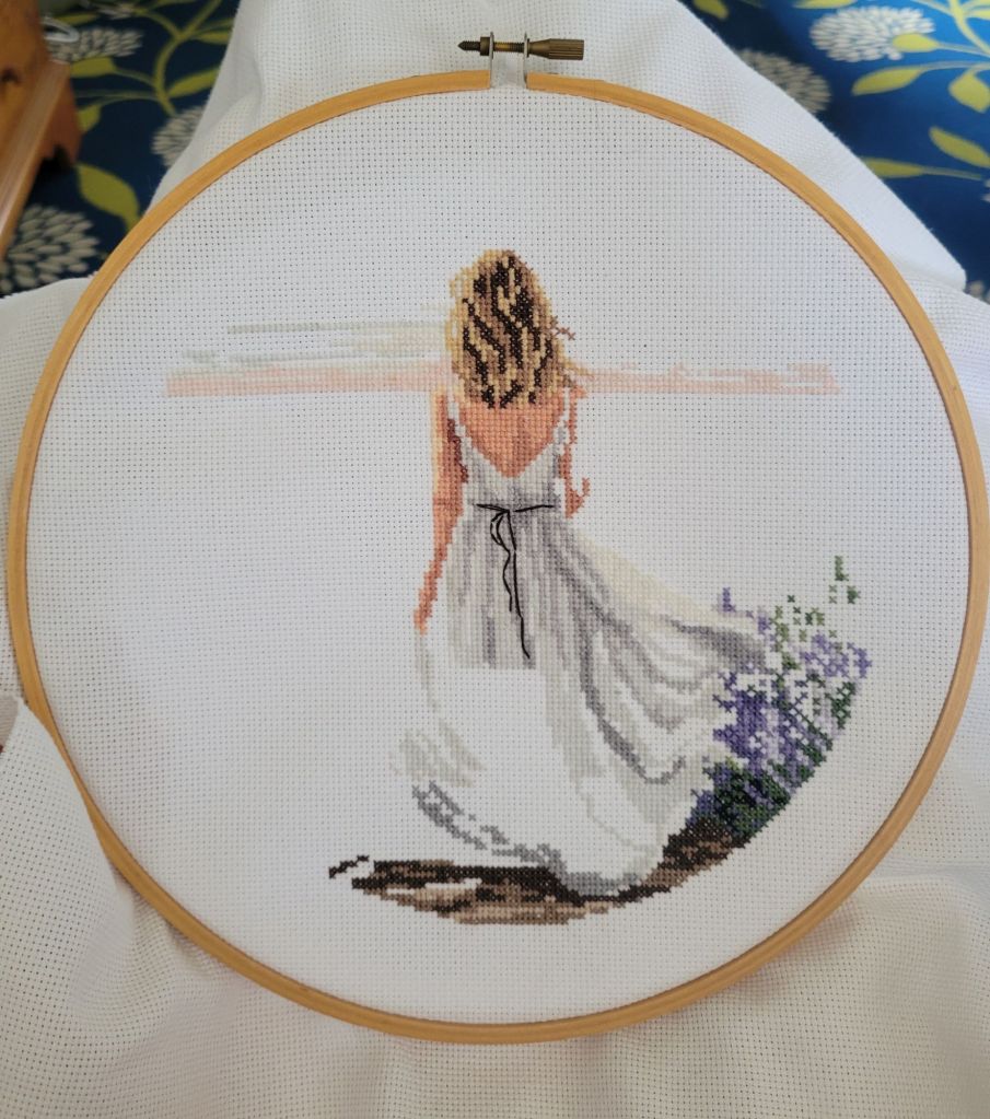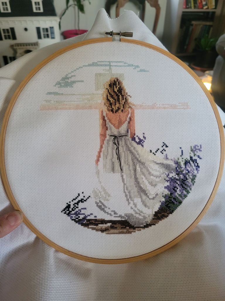 -Did my 3-week SAL update with the girls and stitched some more on Lavender Girl.