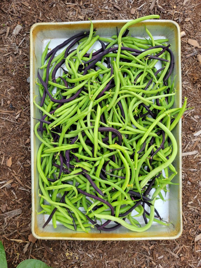 -Made a ham, mashed potatoes and beans for dinner, had the kid come over and eat with us too. Speaking of beans I picked all of the beans from the garden and boy were some of them tasty right then for dinner!