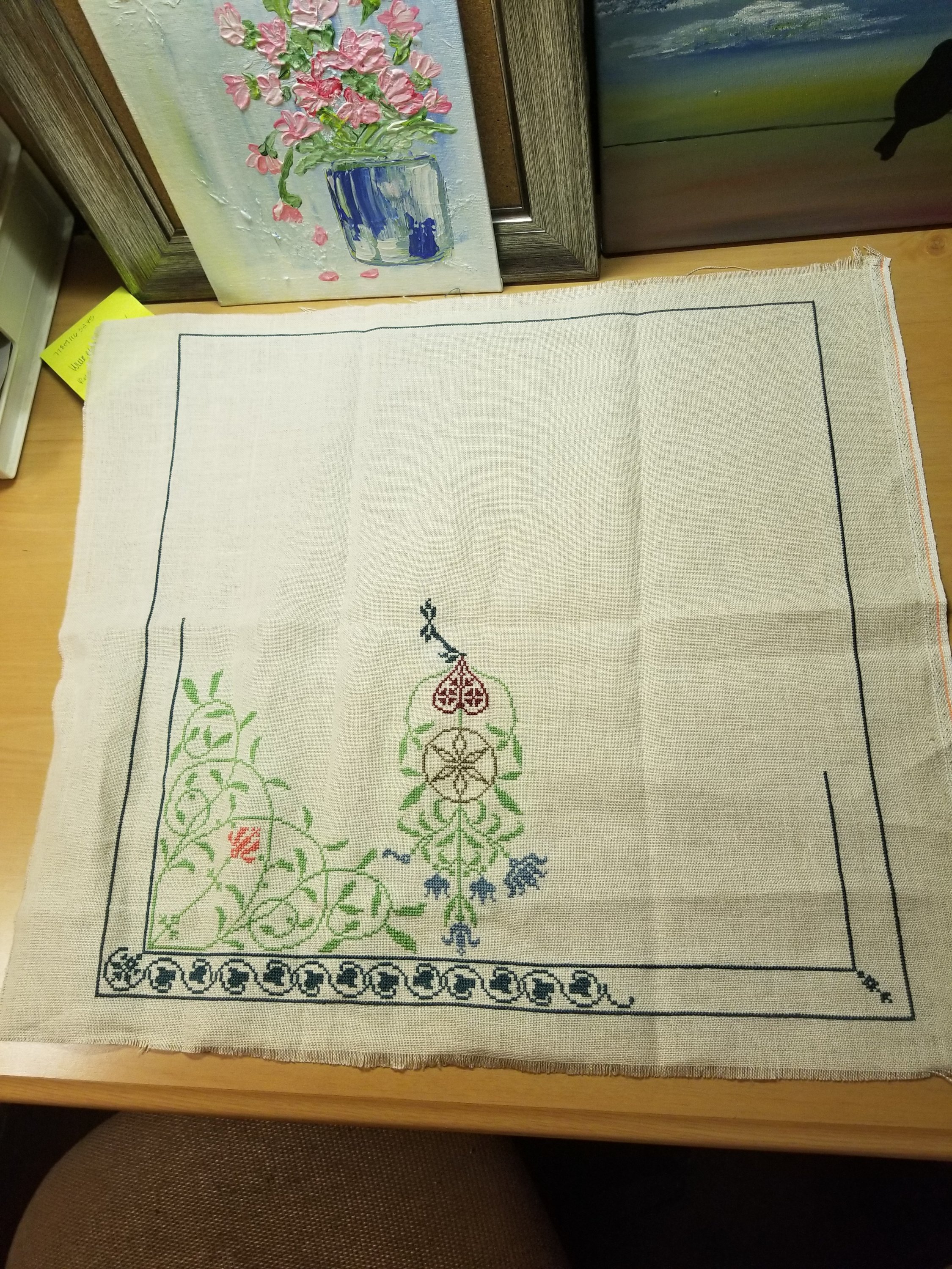I looked at the pattern wrong on the scroll work in the border which set the center part off by about 6 stitches.