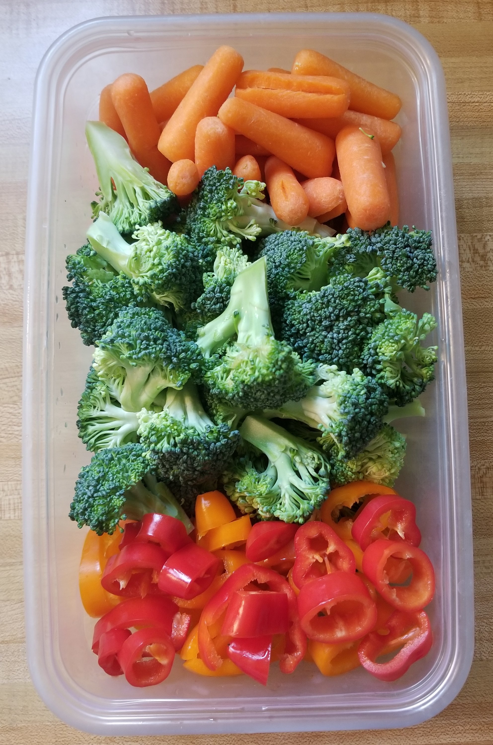 Veggies and Dip – perfect snack! And if I don’t use them all by the end of a week I’ll toss them into a stir-fry or steam them for a side. It’s handy to have them washed, cut up and ready to go.
