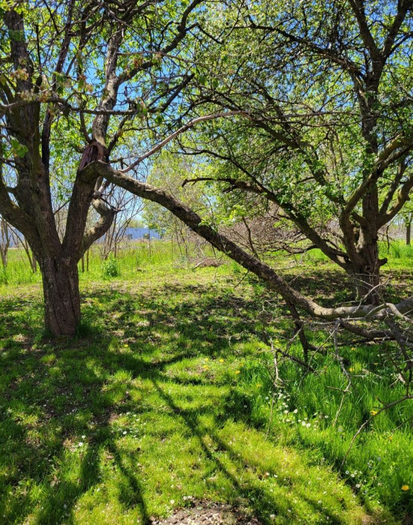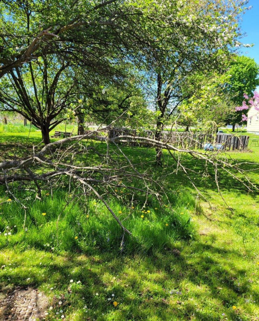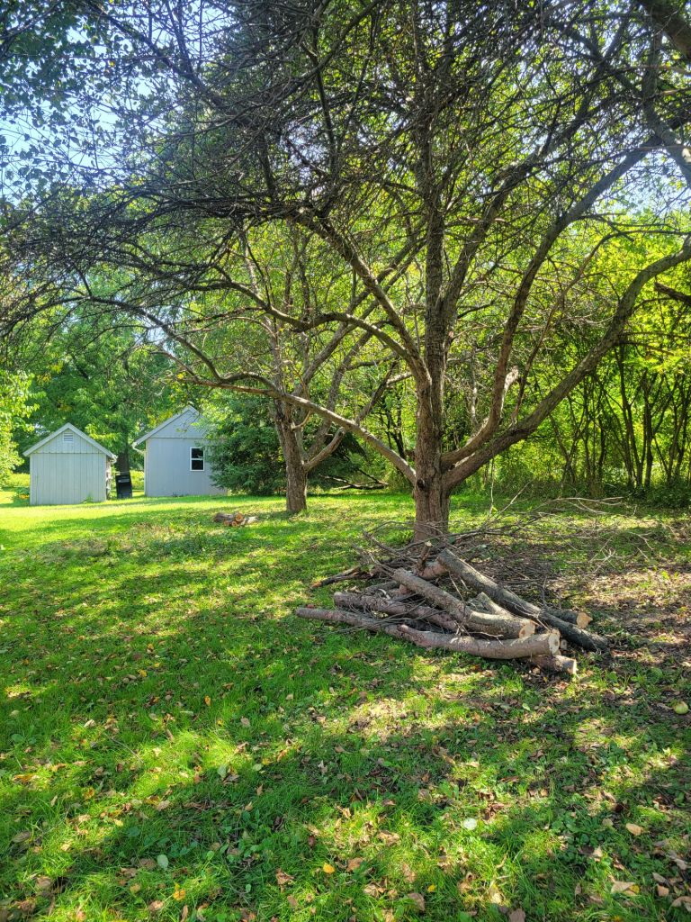 My honey worked on trimming the overgrown apple trees himself. Look at the before and after: