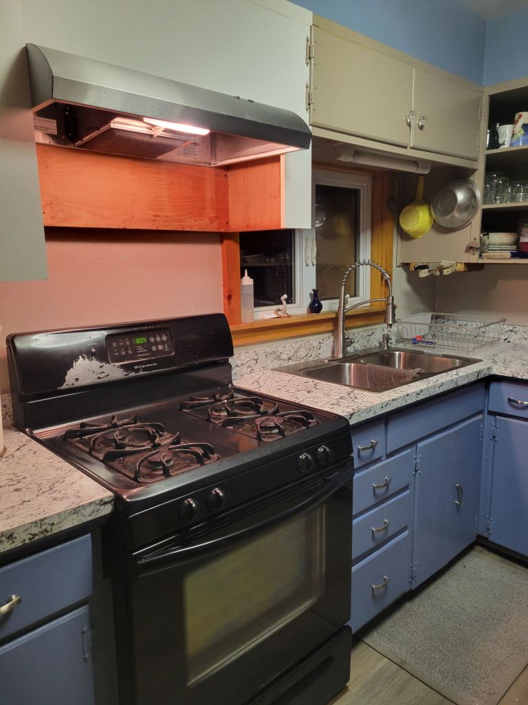 You know the above goal of new countertops, exhaust hood and ripping out the old over-the-counter microwave?? Well we did it! We got all of that accomplished AND got a new kitchen sink too! Now we have to repaint everything but having clean new counter tops and an exhaust that is fixed and works feels amazing! The only thing we didn’t accomplish on this goal was to cut down all of the sumac.